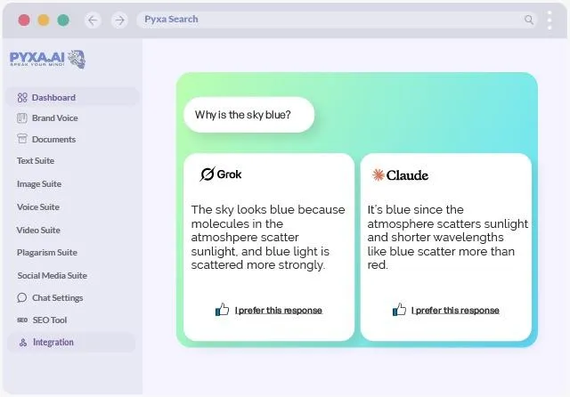 Disclaimer: Pyxa.ai is an independent platform that integrates with various AI APIs. We are not affiliated with, endorsed by, or sponsored by OpenAI, Anthropic, Google, or other AI providers. All trademarks are property of their respective owners.